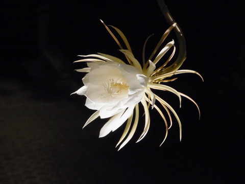 花言葉は「儚い美」とのコト。夜中数時間の命、美人薄命もここから来たんでしょうか。月と花の掛け合い、刺激的で他を寄せ付けない匂いを発していました。音に少し似ている様な印象を受けました。ご近所さんの軒先にて。