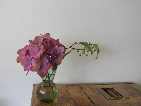 楽器にとっては過酷な季節の到来。最近はよく接着部の剥がれ修理を受けます。紫陽花には心地良い環境なのでしょうか、生き生きとしています。